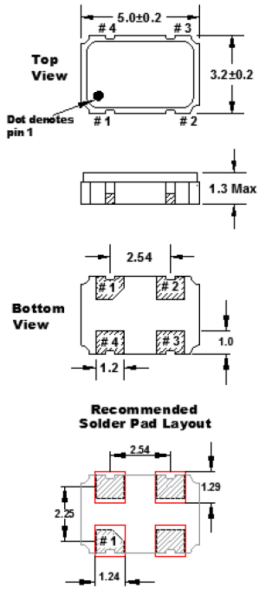 | Size/Dimension尺寸 | 5032mm晶振 | 最小包装数MPQ: | 1000 |