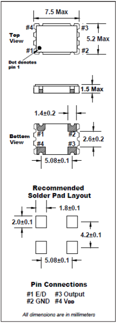 Size/Dimension尺寸 | 7.50mm x 5.20mm | 最小包装数MPQ: | 1000 |