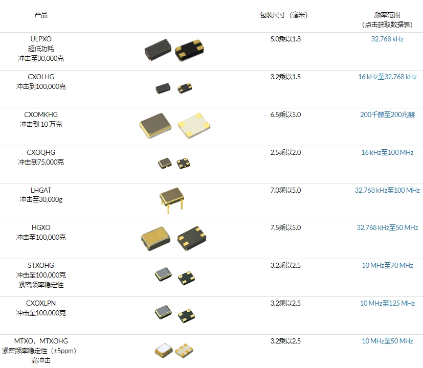 频率稳定度:-40℃~85℃工况下±30ppm~±100ppm可选,-55℃~125℃工况下±50ppm~±100ppm可选,第一年老化±5ppm(根据频率调整);