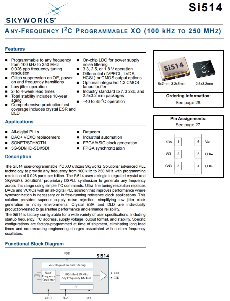 514FAA000115BAG,工业自动化晶振,Si514数据传输晶振