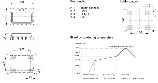 | Size/Dimension尺寸 | 7050四脚贴片晶振 | 最小包装数MPQ: | 1000 |