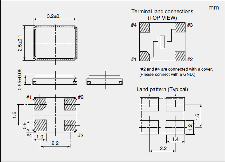 | Size/Dimension尺寸 | 3225mm | 安装方式 Installation: | Surfacemount |