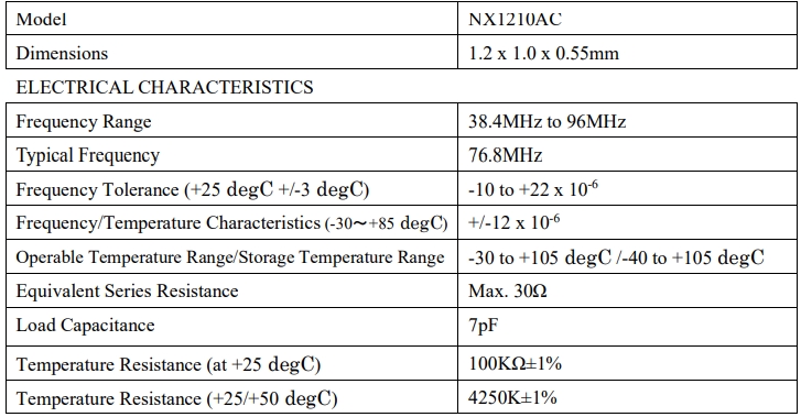 从NX1210AC内置热敏电阻晶体谐振器探索76.8MHz频率世界